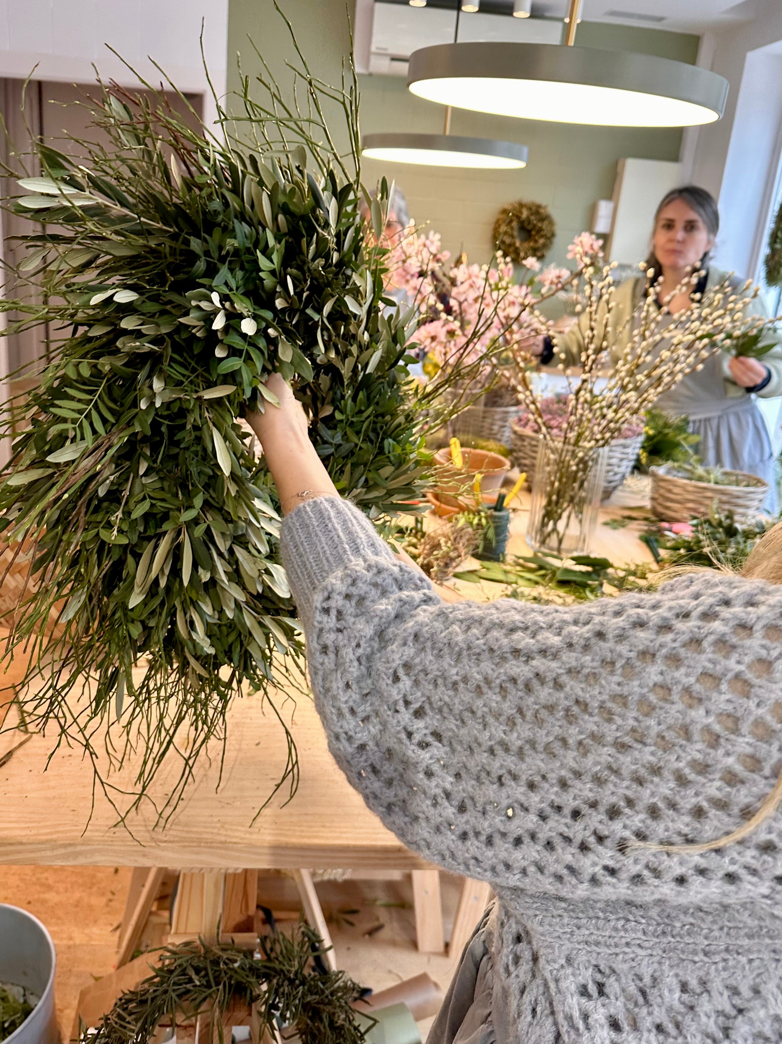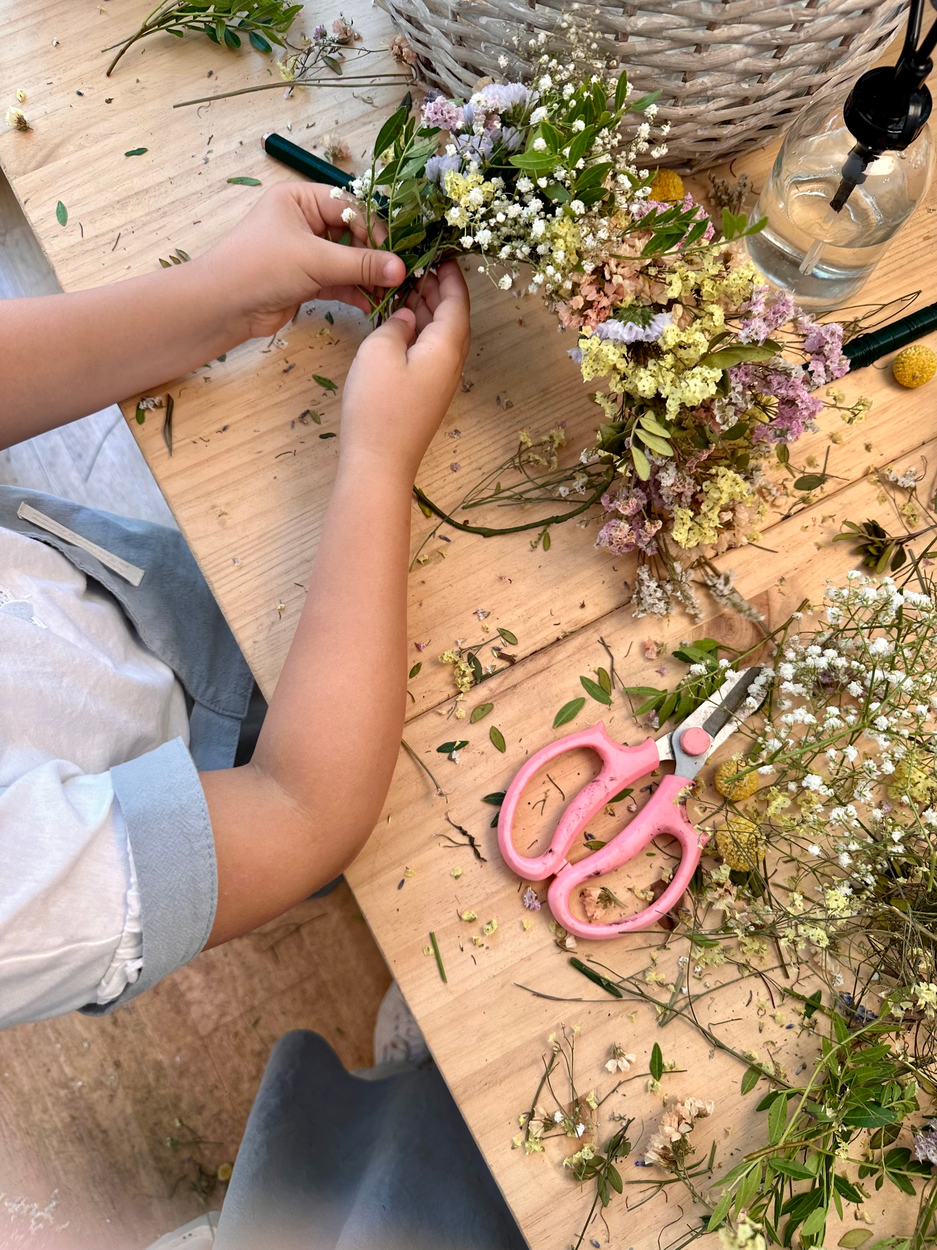 Mis talleres están diseñados para que vivas una experiencia única, aprendiendo a crear coronas y ramos con materiales naturales, en un ambiente acogedor y relajado en mi Atelier, situado en una pequeña plaza con encanto.